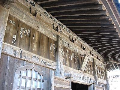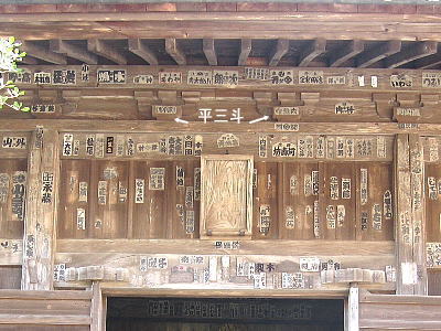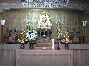 左手には、1.8メートル ほどの大きな位牌があり、それぞれ、応永三十年(1423)、永正十二年(1515)の古いもので、鎌倉ではここだけとのことです。 右手には、伽藍神や達磨大師、弘法大師像などが祀られています。 |