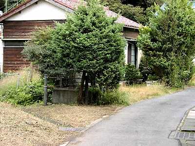 ●鍛冶ケ谷は、大船西口からのバス路線の関谷バス停から、北側にある新しい住宅に向かう広い道路の右側を20〜30メートル進みます。小屋のような建造物のところで右折します。住宅地を進むとすぐ左手に木立があり、その中にあります。